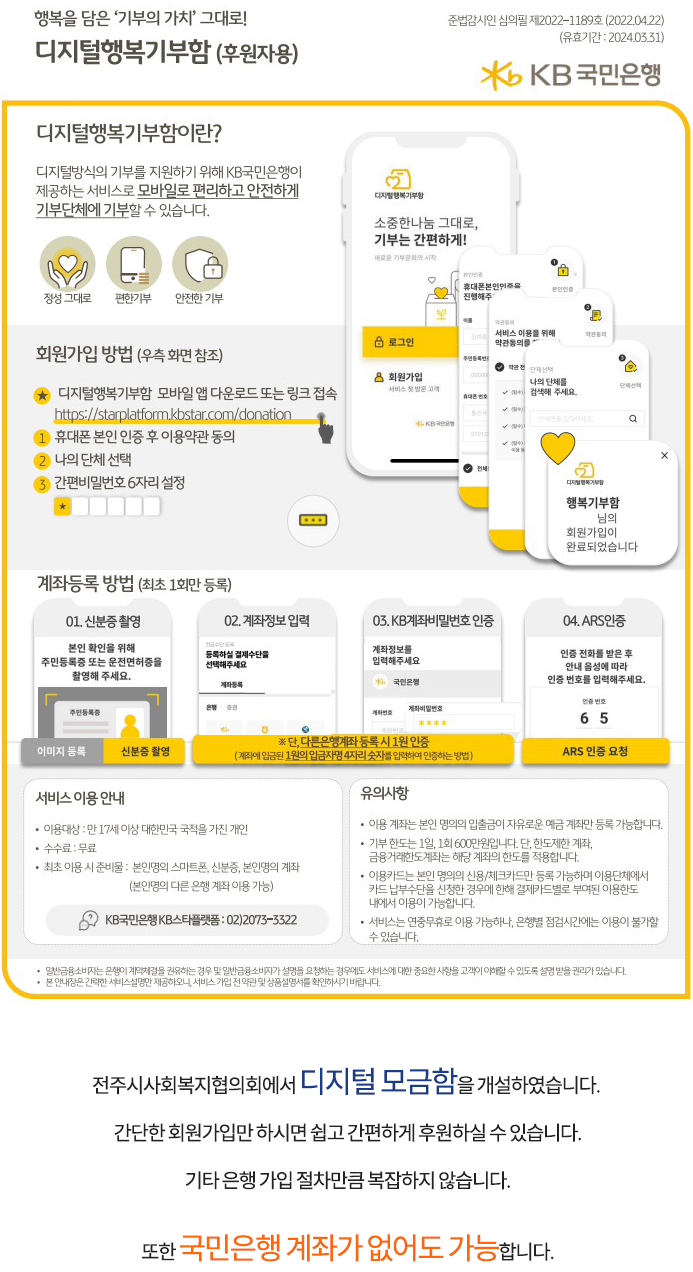 각 은행(농협, 국민은행)에 모금함 설치, 동전이나 소액의 후원금을 모금